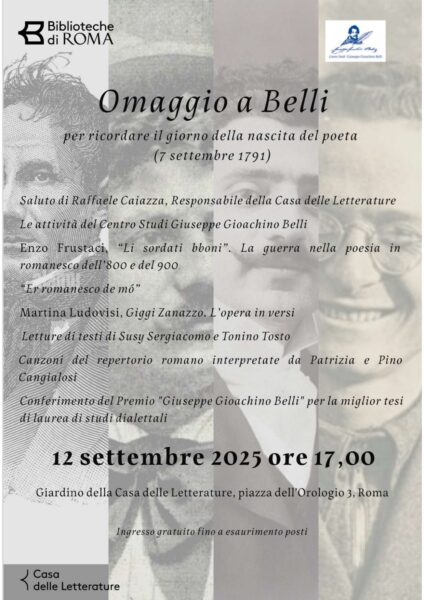come ben sapete il Centro Studi Giuseppe Gioachino Belli dal 1996 organizza ogni anno l’incontro Omaggio a Belli per ricordare il giorno della nascita del poeta (7 settembre 1791).